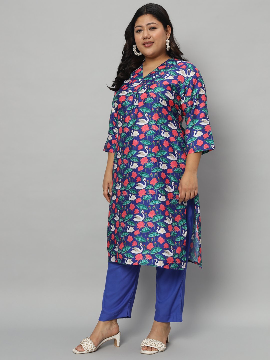 If your vibe says simple yet elegant then this piece is sure to catch your attention. Royal blue colour on silk blend fabric and beautiful swan print makes this one our bestseller.