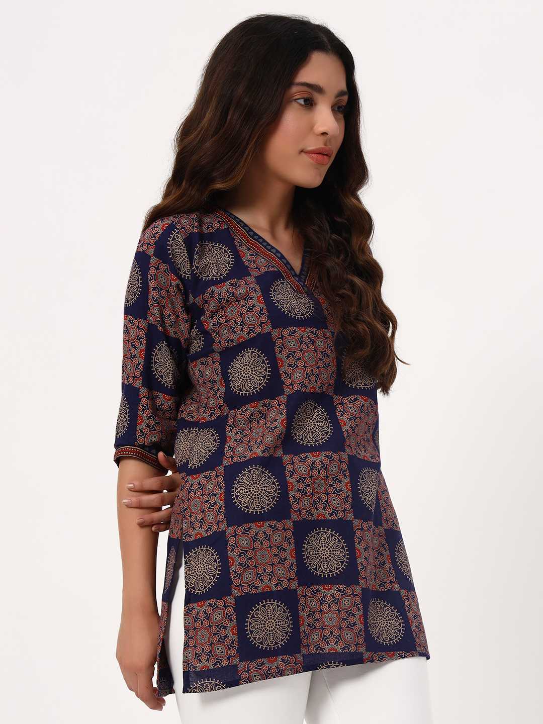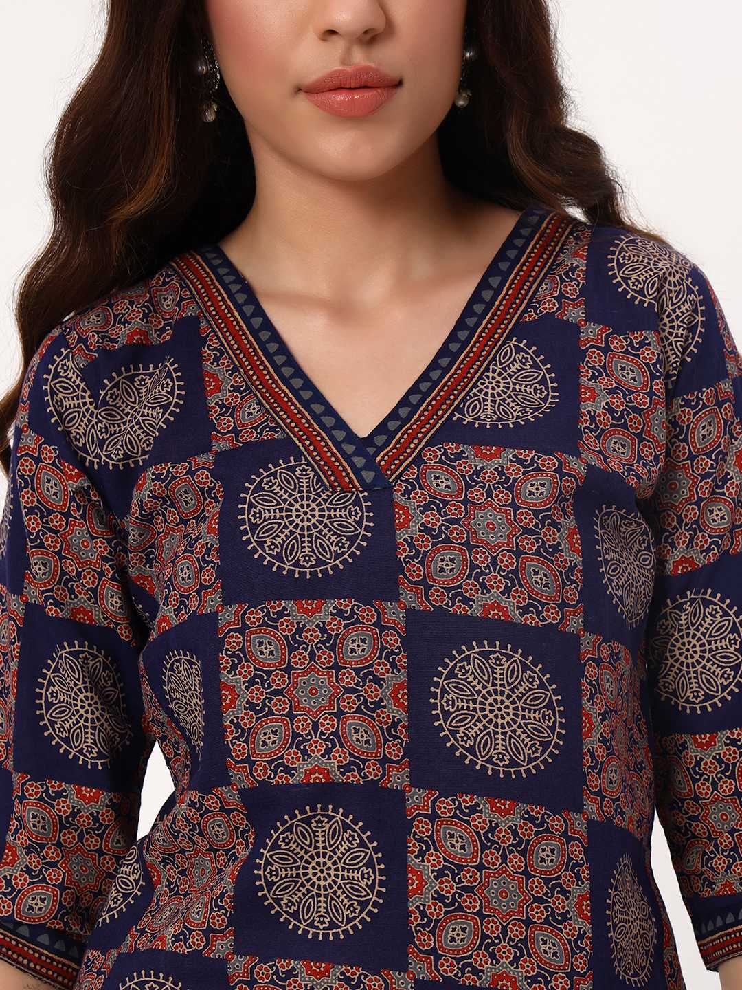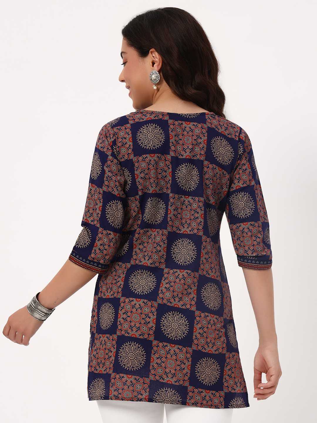 Blue Ajarakh Short Cotton Kurti
