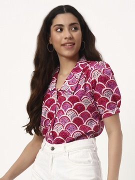 This poppy shirt is sure to catch everyones attention. Crepe fabric assures soft and airy comfort all day long.